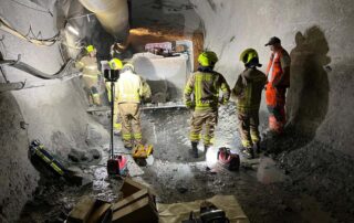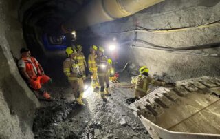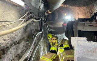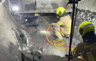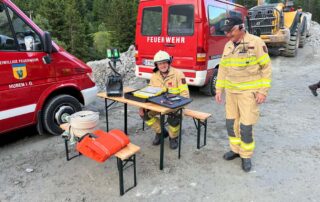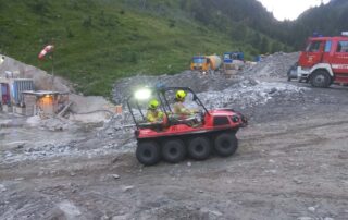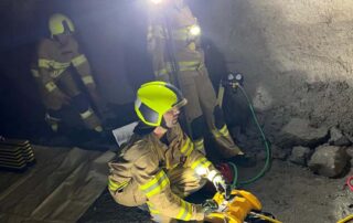 Außerdem konnte sich auch unsere Nachbarfeuerwehr Huben erstmal einen Überblick über die Baustelle bzw. sich einen Eindruck vom Inneren des Druckstollens verschaffen. Unter Verwendung von Atemschutz wurde ein erstes „Kennenlernen“ simuliert und dabei unter anderem die Kommunikation nach Draußen beübt.