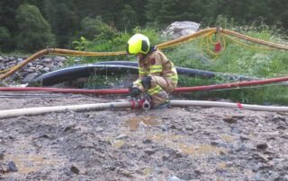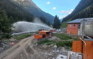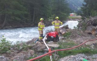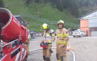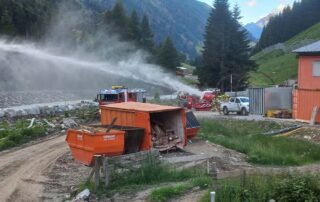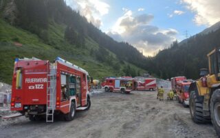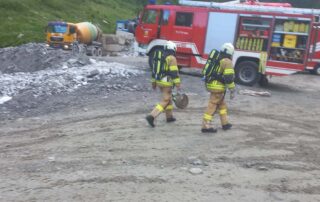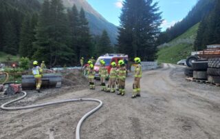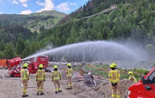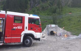 Diesmal nicht im Stollen, sondern im Bereich der Werkstätten und Hauptaugenmerk auf Brandbekämpfung mit Löschwasserversorgung vom Tauernbach.