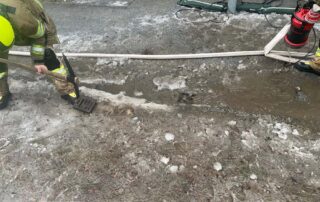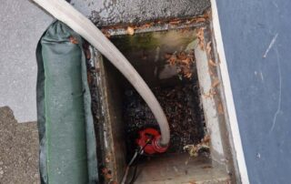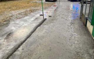 Die Abteile wurden mittels Nasssauger gereinigt und die teils vereisten Kanaleinläufe entlang der Zufahrt freigelegt, wodurch das Regenwasser wieder abfließen konnte.