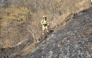 Anschließende Nachlöscharbeiten wurden mittels Waldbrandequipment punktuell durchgeführt und die Brandstelle mit Wärmebildkameras kontrolliert.