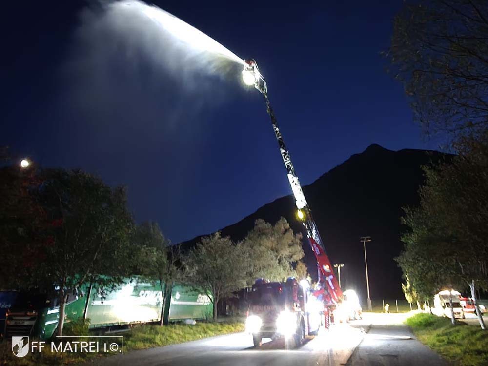 Um die Auswirkung der Förderleistung anschaulich darzustellen, wurde eine kurze Zubringleitung zum Tanklöschfahrzeug aufgebaut, welches wiederum den elektronisch gesteuerten Monitor der Drehleiter mit Löschwasser versorgte.