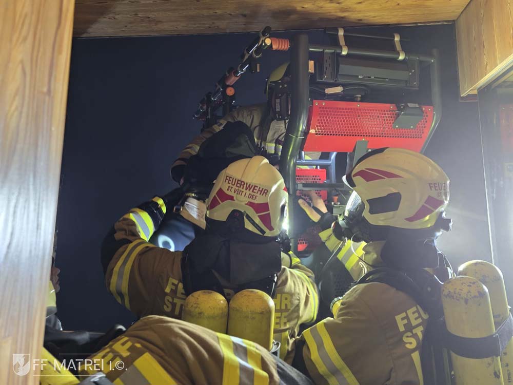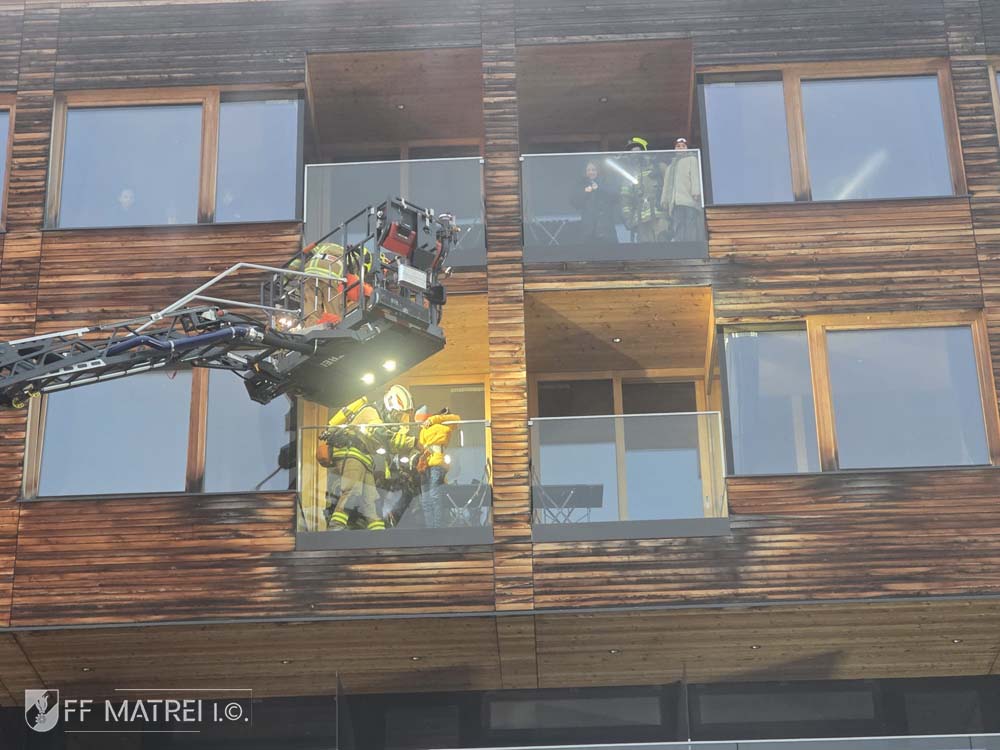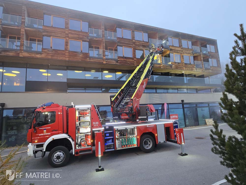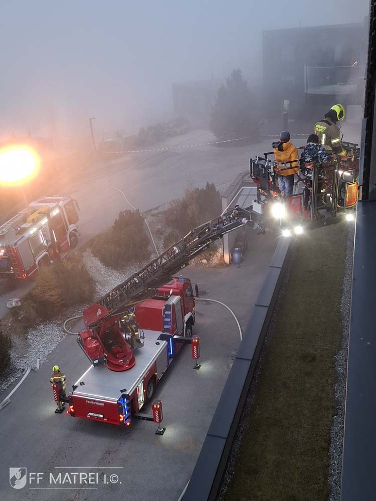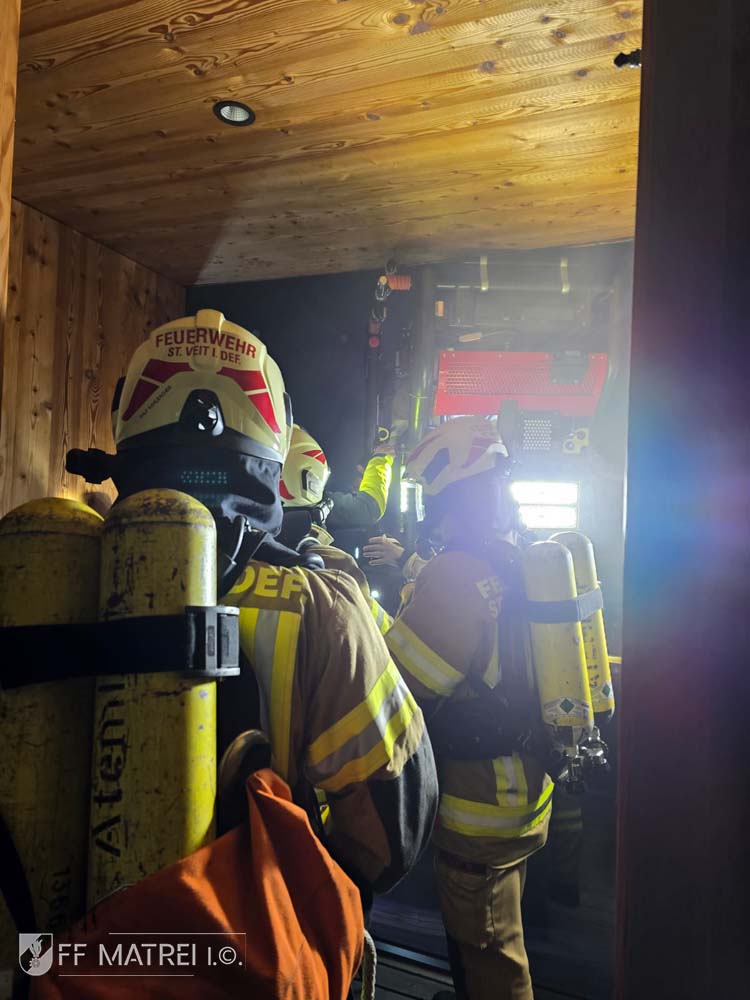 Die FF Matrei stellte einen Atemschutztrupp des Tanklöschfahrzeuges und unterstützte die Nachbarfeuerwehren bei der Bergung durch die Drehleiter über Balkon.