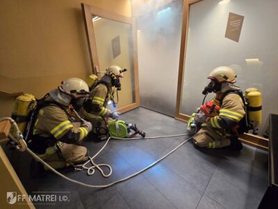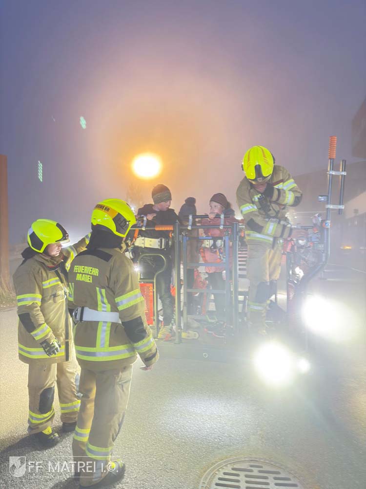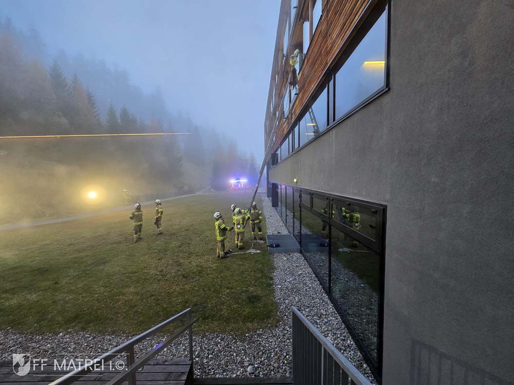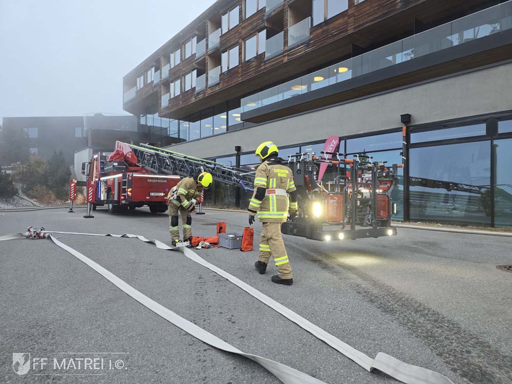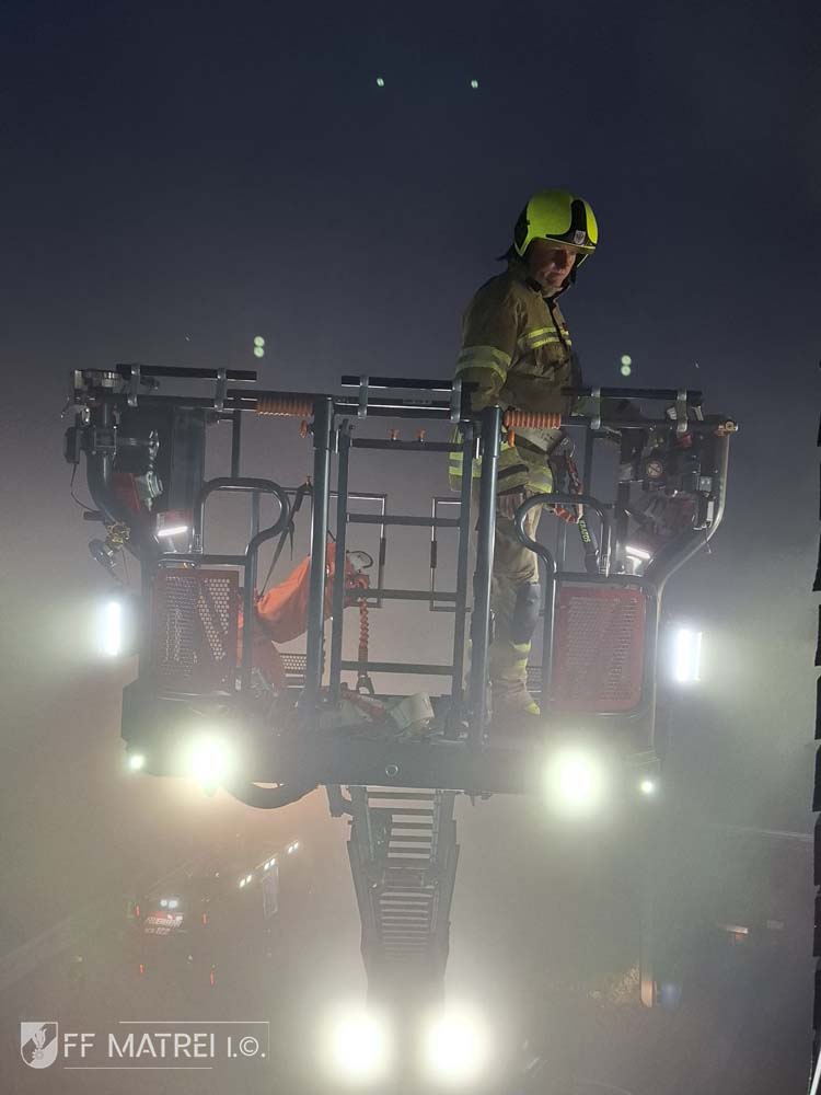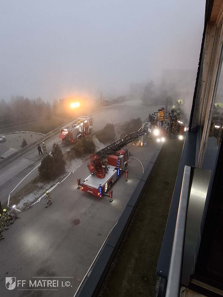 Die FF Matrei stellte einen Atemschutztrupp des Tanklöschfahrzeuges und unterstützte die Nachbarfeuerwehren bei der Bergung durch die Drehleiter über Balkon.