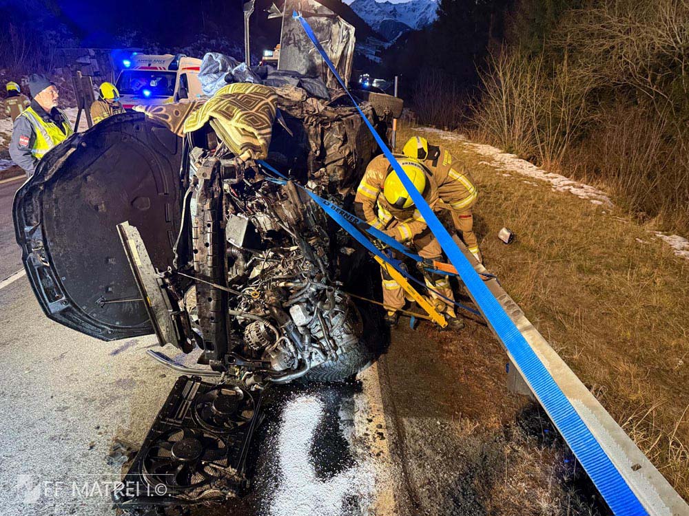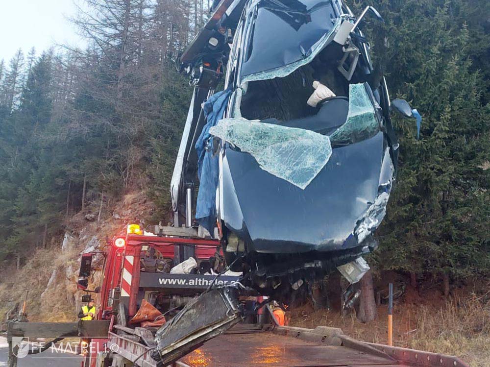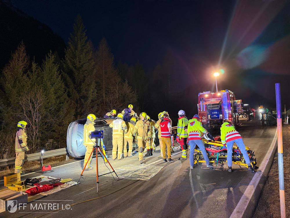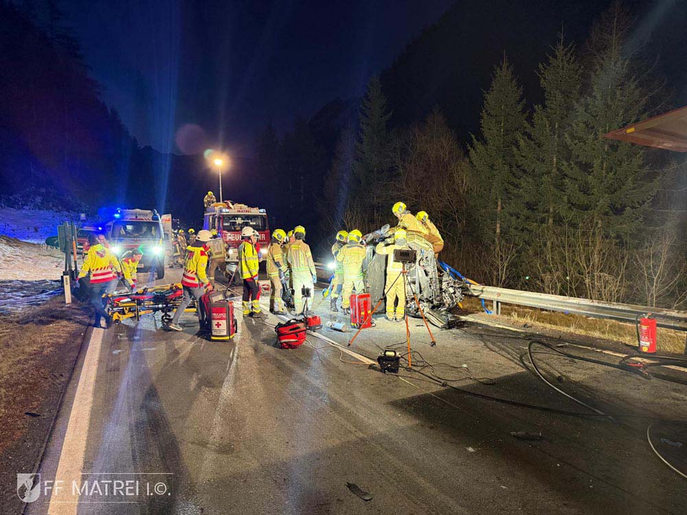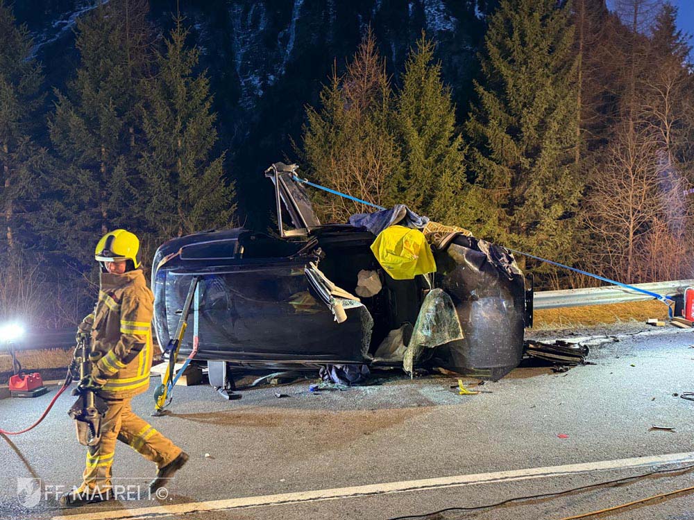 Die Feuerwehr Matrei nahm Sicherungsmaßnahmen vor, stabilisierte das Fahrzeug und konnte unter Einsatz von hydraulischem Rettungsgerät eine Person aus dem Wrack bergen und dem Roten Kreuz zur weiteren Versorgung übergeben.
