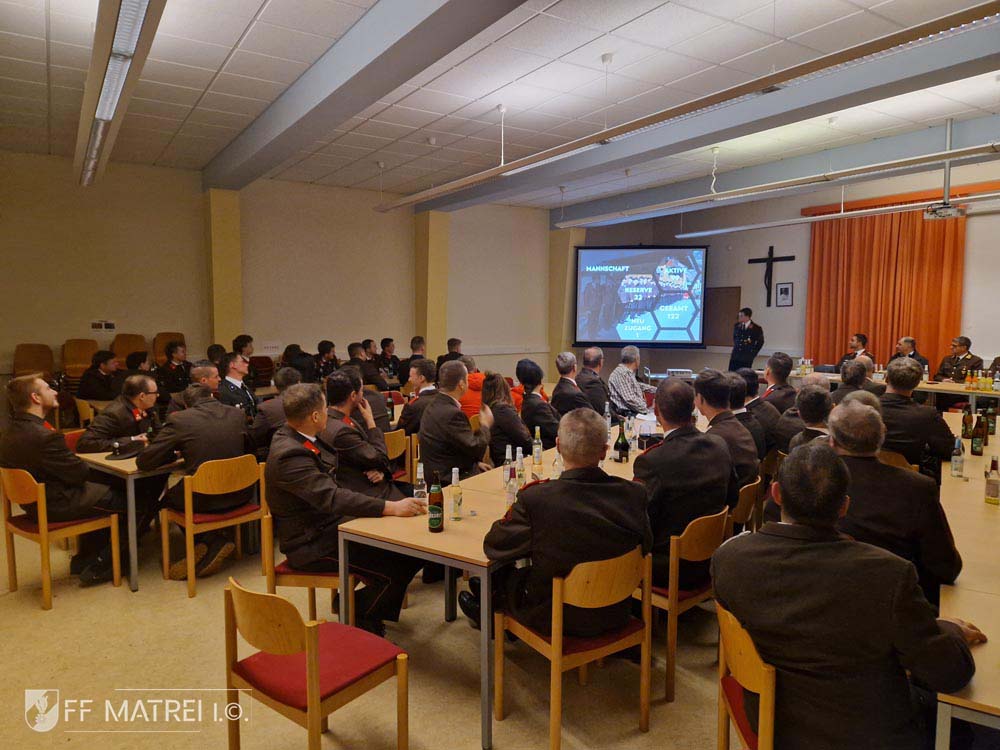 Aktuell besteht die Feuerwehr Matrei aus 122 Mitgliedern, davon 99 Aktive Feuerwehrfrauen und -Männer und 22 der Reserve.