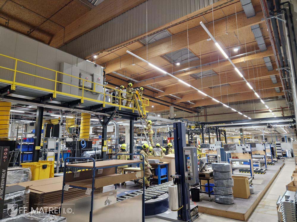 Eine „Person“ wurde lokalisiert und per Steckleiter von einem Zwischenboden geborgen.